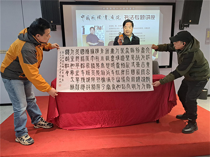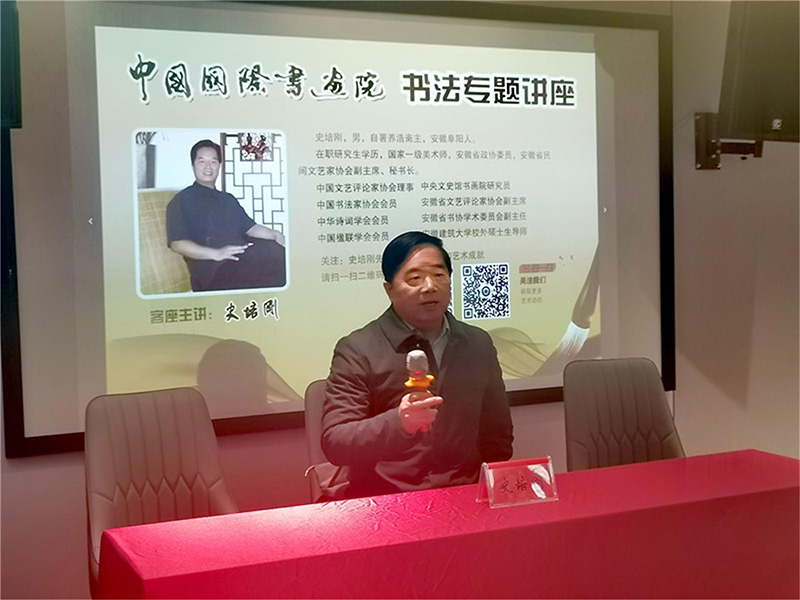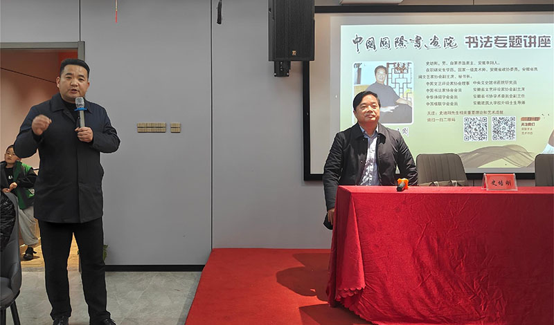 这次艺术交流活动由中国国际书画院主办,安徽分院协办。中国国际书画院常务院长王成,执行院长石大立,副院长兼秘书长周自勇,副院长周立安和许梅生等五位院委及行政副院长陆友明、庐因传、沈国兵和桂恒宝参加活动。中国国际书画院安徽分院长王全一,执行院长张明,常务院长张东也参加了讲座活动。现场高朋满座,气氛热烈,也吸引了众多书法爱好者和文化工作者的积极参与。