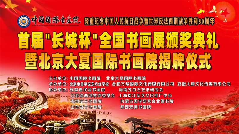 本次活动主办单位是中国国际书画院和北京大夏国际书画院;承办单位有北京市昌平区东方红学校、合肥万邦国际文化传媒有限公司、安徽大庸文化传媒有限公司;协办单位有安徽省民盟书画院、海南齐白石艺术研究会、江苏徐悲鸿紫砂委员会、上海松江弘艺文化推广中心、贵州茫父书画院、内蒙古国学研究会北疆书院、山东蓝天书画院、陕西双拥书画院等。