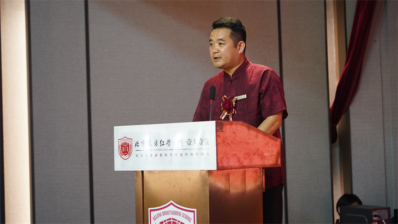 最后 ,北京市昌平区东方红学校理事刘水生先生发表讲话。他对各位领导、嘉宾的到来表示热烈欢迎,并简单介绍了东方红学校的发展史,他表示东方红学校将一如既往地支持书画艺术事业的发展,为培养更多优秀的艺术人才而加倍努力。