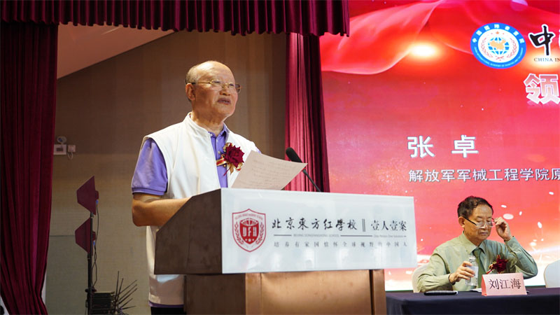 主办方和东方红学校为此次活动做好了大量的准备工作,领导提前到位迎接嘉宾,嘉宾们在签到台签到、佩戴胸花,有序进入会场就坐。伴随着欢快的暖场音乐,仪式正式开始。与会领导嘉宾首先合影留念,共同记录下这一难忘的时刻。随后,主持人致礼节性的开场词,对到场的领导、嘉宾进行介绍。到会的主要领导、嘉宾有:原北京军区副司令员段端武中将、解放军军械工程学院原院长张卓将军、原总装备部某基地政委刘全胜将军,总后勤部某研究所原所长、中国书协会员杨廷欣将军,全国政协机关党委原副书记、书法家魏洪罗,火箭军某部政治部主任、中联国兴书画院副院长兼艺术团团长、中国书画家联谊会副主席宋伯军大校,军委原总政治部办公厅编研室副主任、军旅画家摄影家马堪岱大校,解放军总后某学院政委、研究员、著名书法家、写字教育专家,语言文字工作专家吴玉生,中红网总编、中国扇子艺术学会顾问江山,人民大会堂书画室主任、中国书协美协会员李景祥,中书协会员、著名美术家、书法家、艺术评论家刘建民教授,文化部东方文化艺术院副院长兼国画院院长,中国美协会员,中央国家机关美术协会艺术顾问刘兆平,著名军旅书法家书法教育家,“中华金奖书画家”,“世界书画艺术名人”张树良,总后勤部军代局原副局长、中央国家机关书画协会理事,书画家谢嗣福大校,北京三0一医院后勤处原处长、书法家张官平大校,东方红学校理事刘水生,中国国际书画院、北京大夏国际书画院院长周鉴明,中国国际书画院常务副院长、北京大夏国际书画院执行院长王成,中国国际书画院执行院长、北京大夏国际书画院常务副院长江枫,中国国际书画院、北京大夏国际书画院副院长兼秘书长周自勇等。